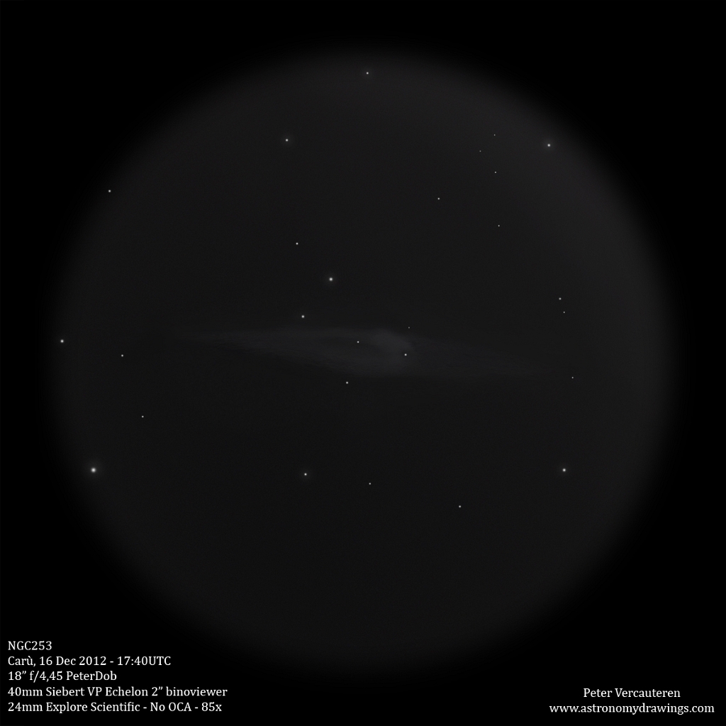 This is probably the last drawing I'll have made with my good old home-built 18" telescope: NGC246, better known as the Skull Nebula, can be found in the vast…NGC253 (18in Dobson)