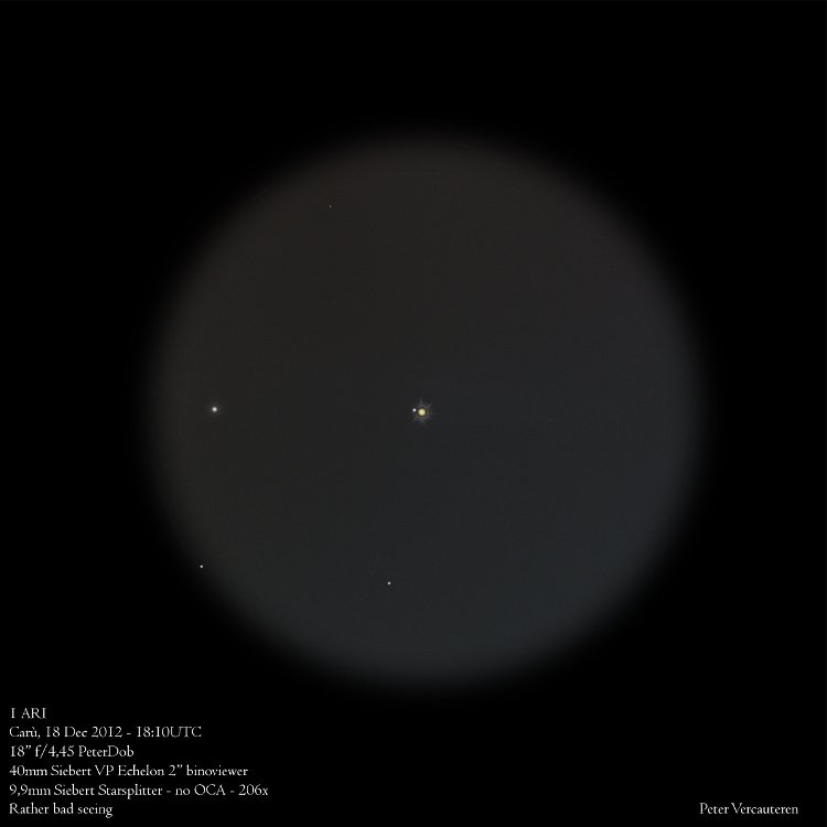 Here’s a nice double star, 1 ARI: magnitude 6,0 and 7,5 with a distance of only 3 arcseconds.